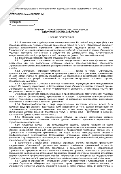 Правила страхования профессиональной ответственности аудиторов