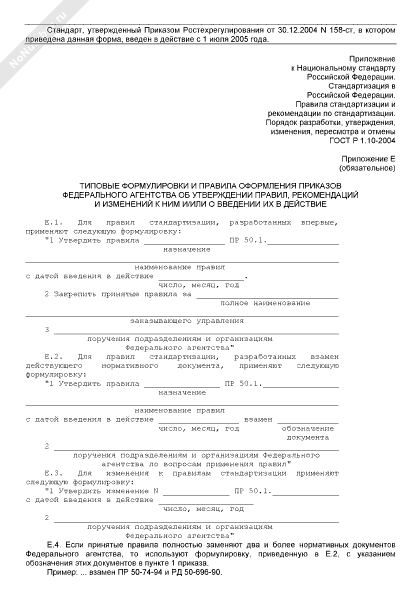 Типовые формулировки и правила оформления приказов Федерального агентства об утверждении правил, рекомендаций и изменений к ним и/или о введении их в действие (рекомендуемый образец заполнения)