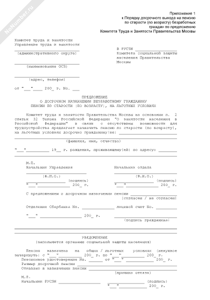 Предложение о досрочном назначении безработному гражданину пенсии по старости (по возрасту), на льготных условиях