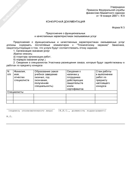 Предложение о функциональных и качественных характеристиках оказываемых услуг (форма № 3)