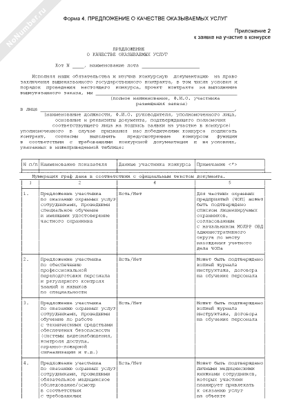 Предложение о качестве оказываемых услуг (приложение к заявке на участие в конкурсе на право заключения государственного контракта на оказание охранных услуг города Москвы. Форма № 2)