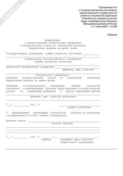 Предложение о предоставлении безработному гражданину государственной услуги по социальной адаптации безработных граждан на рынке труда (рекомендуемый образец заполнения)