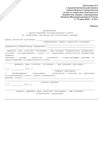 Предложение о предоставлении государственной услуги по содействию самозанятости безработных граждан (рекомендуемый образец заполнения)