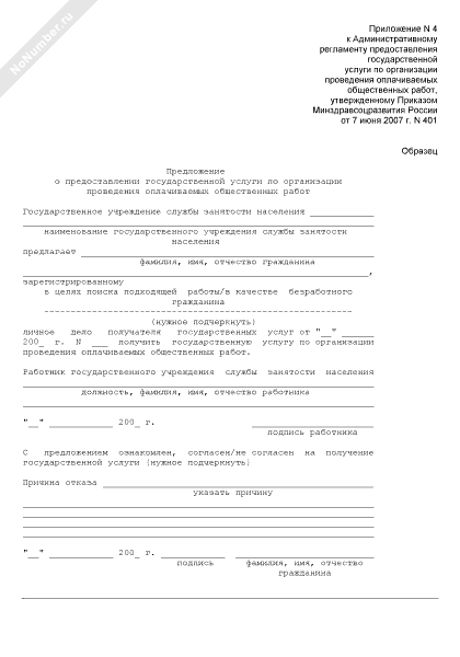 Предложение о предоставлении государственной услуги по организации проведения оплачиваемых общественных работ гражданину, ищущему работу (рекомендуемый образец заполнения)