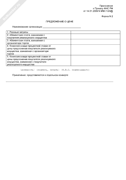 Предложение о цене оказания услуг электронного торгового портала (форма № 2)