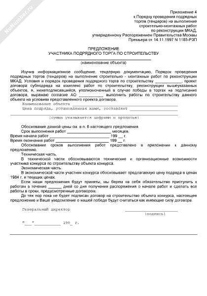 Предложение участника подрядного торга по строительству/реконструкции (рекомендуемый образец заполнения)