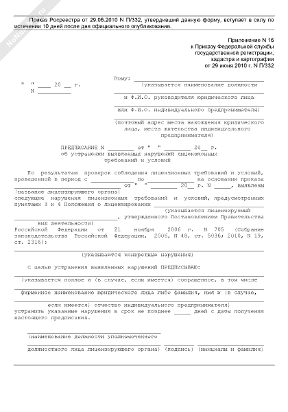 Предписание об устранении выявленных нарушений лицензионных требований и условий при осуществлении геодезической (картографической) деятельности