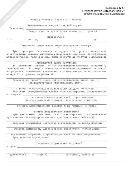 Предписание по результатам метрологического надзора, в котором указываются основные недостатки, выявленные в ходе контроля, и предложения по их устранению (рекомендуемый образец заполнения)