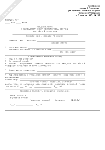 - Источник– Приказ Минобороны РФ от 07.08.1996 № 280 (редакция от 17.07.2008 № 281)