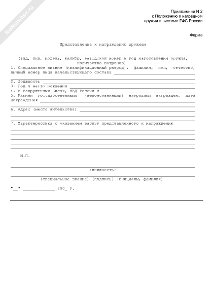 Представление к награждению оружием в системе Государственной фельдъегерской службы РФ (рекомендуемый образец заполнения)