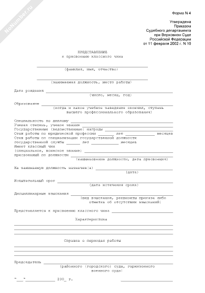 Представление к присвоению классного чина для федеральных судов общей юрисдикции (форма № 4)