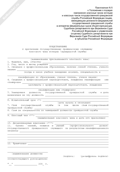 Представление к присвоению классного чина юстиции (гражданской службы) государственному гражданскому служащему государственной гражданской службы Российской Федерации, замещающего должность федеральной государственной гражданской службы в аппаратах федеральных судов общей юрисдикции, Судебном департаменте при Верховном Суде Российской Федерации