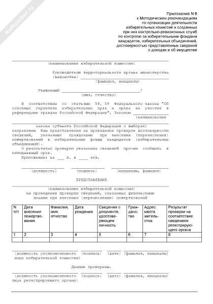 Представление на проведение проверки достоверности сведений, указанных гражданами при внесении (перечислении) пожертвований в избирательные фонды кандидатов (избирательных объединений)