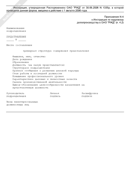 - Источник– Распоряжение ОАО «РЖД» от 30.06.2006 № 1335Р