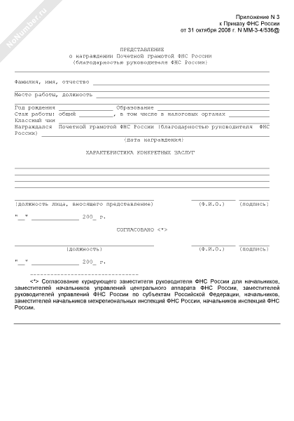- Источник– Приказ ФНС РФ от 31.10.2008 № ММ-3-4/536@