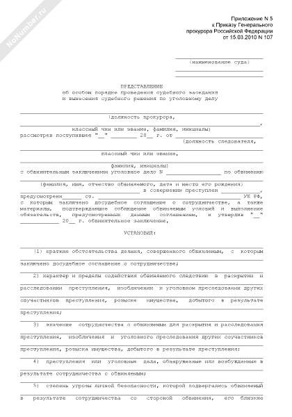 - Источник– Приказ Генпрокуратуры РФ от 15.03.2010 № 107