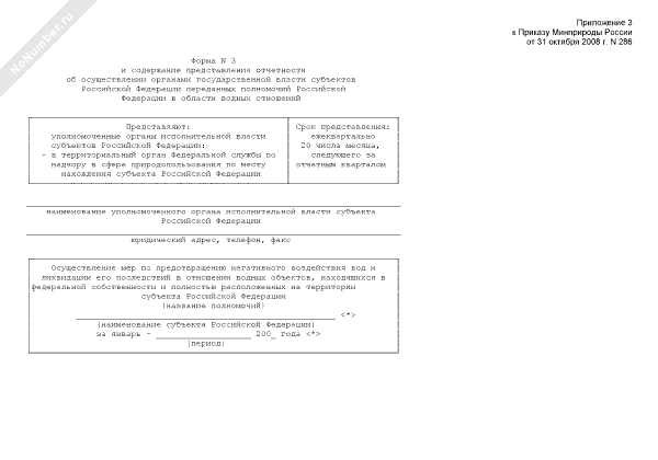 Представление отчетности об осуществлении органами государственной власти субъектов Российской Федерации переданных полномочий Российской Федерации в области водных отношений. Осуществление мер по предотвращению негативного воздействия вод и ликвидации его последствий в отношении водных объектов, находящихся в федеральной собственности и полностью расположенных на территории субъекта Российской Федерации (форма № 3)