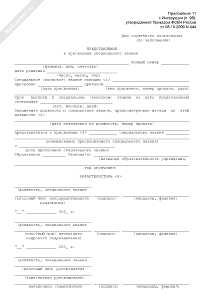 Представление сотрудника (гражданина) органа наркоконтроля к присвоению специального звания (за исключением специального звания высшего начальствующего состава)