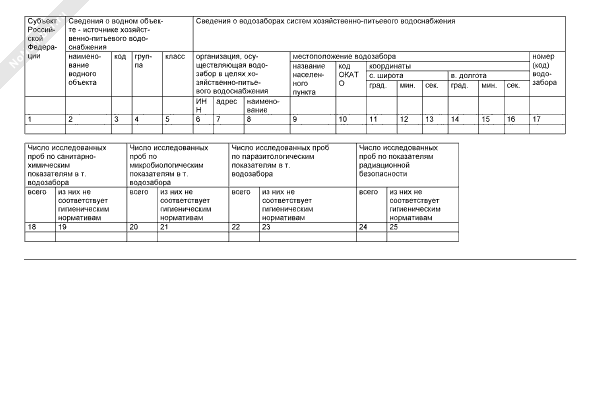 Представление сведений Федеральной службой по надзору в сфере защиты прав потребителей и благополучия человека о санитарно-эпидемиологической обстановке на водных объектах — источниках хозяйственно-питьевого водоснабжения. Форма № 2.1 (рекомендуемый образец заполнения)