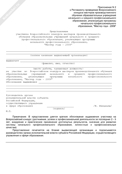Представление участника Всероссийского конкурса мастеров производственного обучения образовательных учреждений начального и среднего профессионального образования, реализующих программы начального профессионального образования (рекомендуемый образец заполнения)