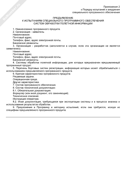 Предъявление к испытаниям специального программного обеспечения систем обработки полетной информации