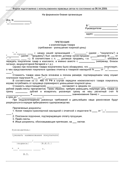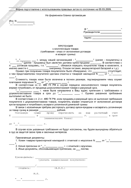 - 46Претензия к комплектации товара (требование — доукомплектование товара)