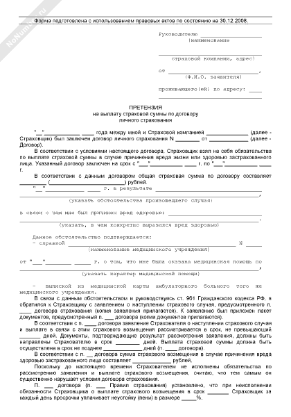 - 53Претензия к страховой компании на выплату страховой суммы по договору личного страхования