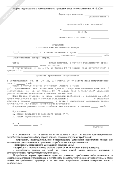 - 56Претензия к торговому предприятию о продаже некачественного товара