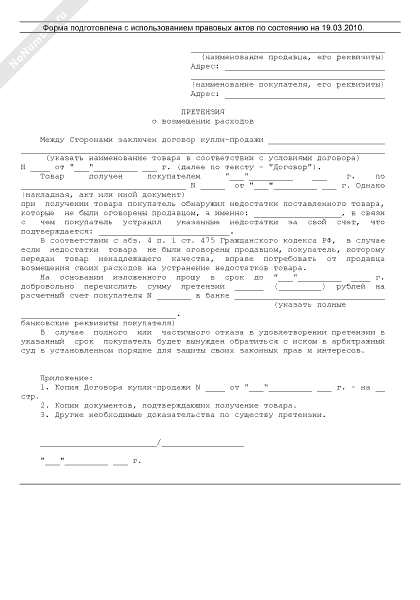 - 111Претензия о возмещении продавцом расходов покупателя на устранение недостатков товара