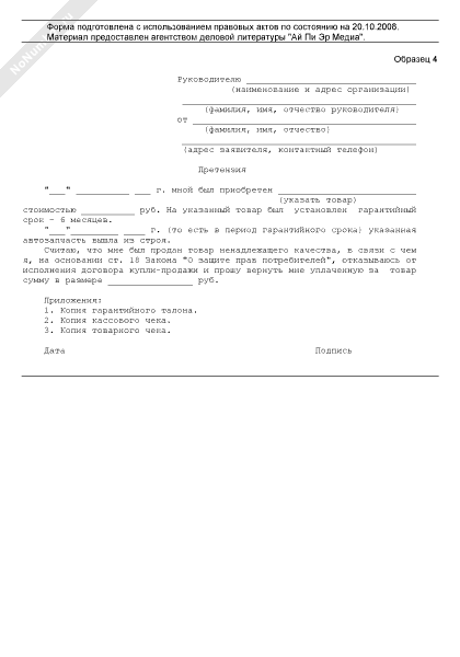 - 120Претензия о замене некачественного товара на товар аналогичной марки