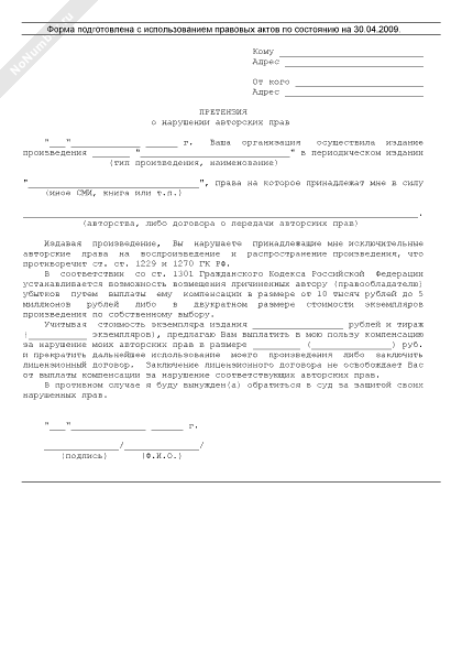 Претензия о нарушении авторских прав