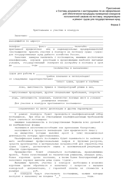 - 10Приглашение к участию в конкурсе исполнителей заказов на поставку, модернизацию и ремонт судов для государственных нужд рыбного хозяйства РФ. Форма 3