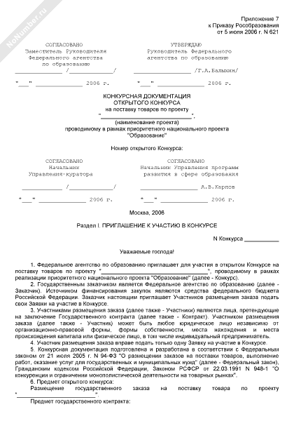 - 9Приглашение к участию в конкурсе на поставку за счет средств текущего финансирования из федерального бюджета и (или) других внебюджетных источников