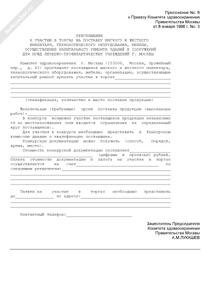 - 7Приглашение к участию в торгах на поставку мягкого и жесткого инвентаря, технологического оборудования, мебели, осуществление капитального ремонта зданий и сооружений для нужд лечебно-профилактических учреждений города Москвы