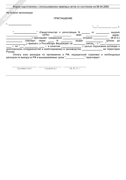 - 12Приглашение коммерческой организацией иностранного гражданина в Российскую Федерацию с целью подписания договора о долгосрочном сотрудничестве и инвестировании в производство на территории России