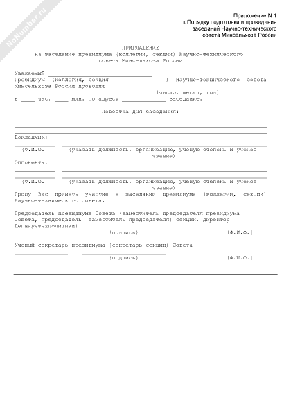 - 16Приглашение на заседание президиума (коллегии, секции) Научно-технического совета Минсельхоза России