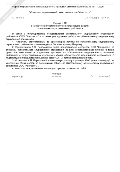 - 271Приказ о назначении ответственного за организацию работы по медицинскому страхованию работников