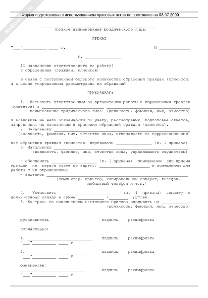- 273Приказ о назначении ответственного за работу с обращениями (граждан, клиентов)