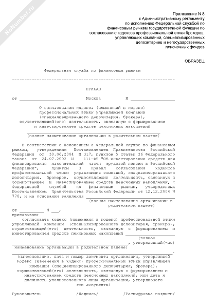 - 588Приказ о согласовании кодекса (изменений в кодекс) профессиональной этики управляющей компании (специализированного депозитария, брокера), осуществляющей(его) деятельность, связанную с формированием и инвестированием средств пенсионных накоплений
