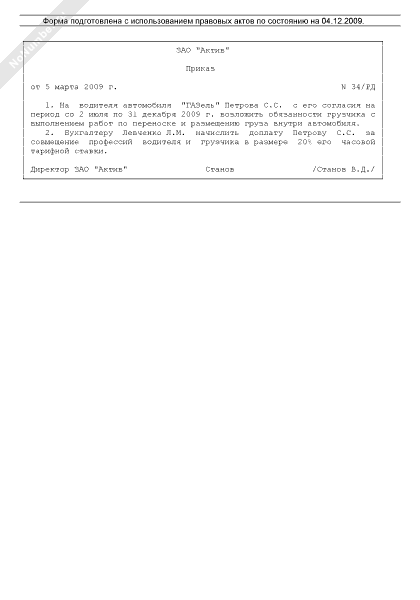 - 585Приказ о совмещении должностей (ст. ст. 60.2, 151 ТК РФ)