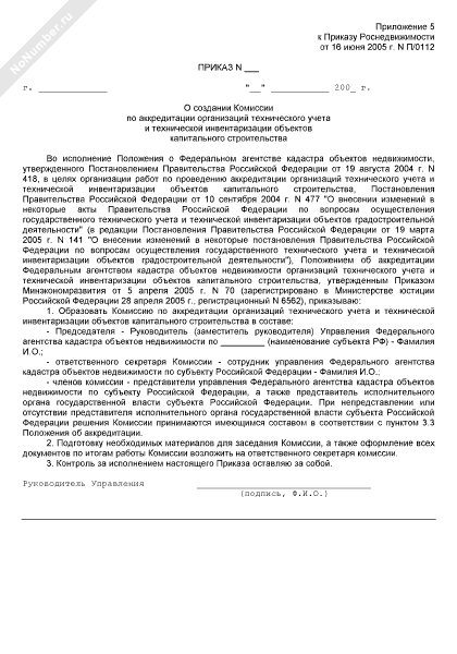 - 600Приказ о создании комиссии по аккредитации организаций технического учета и технической инвентаризации объектов капитального строительства