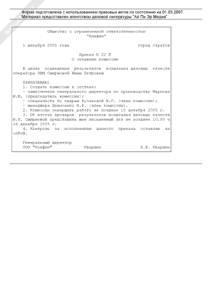 - 597Приказ о создании комиссии по проверке деловых качеств работника