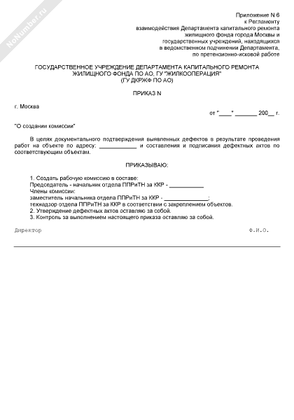 - 598Приказ о создании комиссии в целях документального подтверждения выявленных дефектов в результате проведения работ на объекте