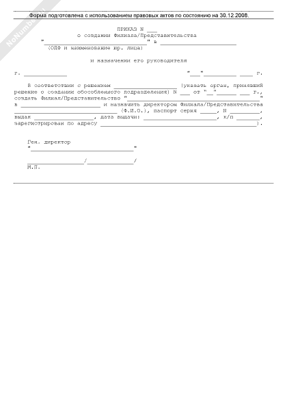 - 595Приказ о создании обособленного подразделения и назначении его руководителя