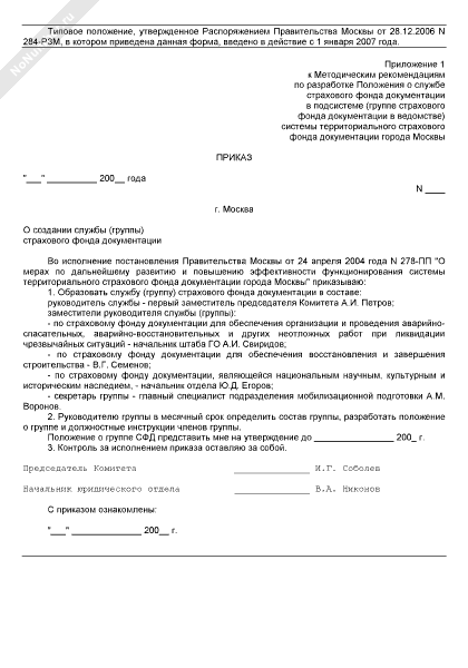- 591Приказ о создании службы (группы) страхового фонда документации города Москвы