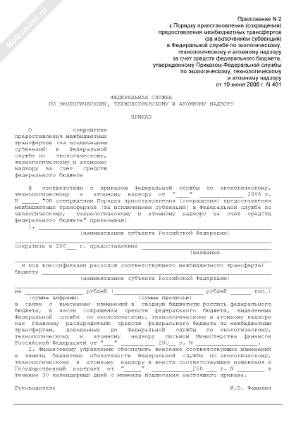 - 623Приказ о сокращении предоставления межбюджетных трансфертов (за исключением субвенций) в Федеральной службе по экологическому, технологическому и атомному надзору за счет средств федерального бюджета
