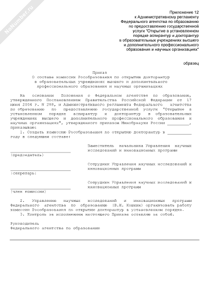 - 630Приказ о составе комиссии Рособразования по открытию докторантур в образовательных учреждениях высшего и дополнительного профессионального образования и научных организациях
