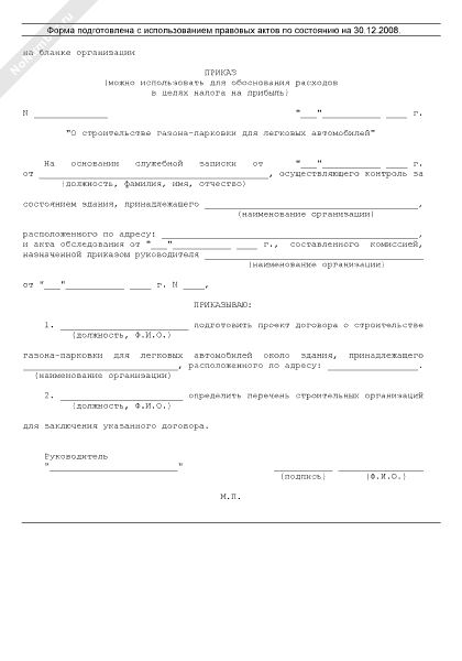 - 637Приказ о строительстве газона-парковки для легковых автомобилей