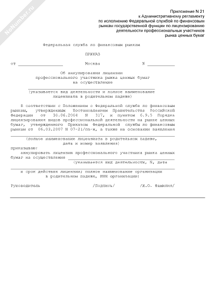 - 640Приказ об аннулировании лицензии профессионального участника рынка ценных бумаг на осуществление деятельности