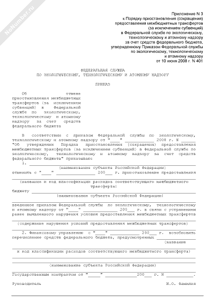 - 722Приказ об отмене приостановления межбюджетных трансфертов (за исключением субвенций) в Федеральной службе по экологическому, технологическому и атомному надзору за счет средств федерального бюджета
